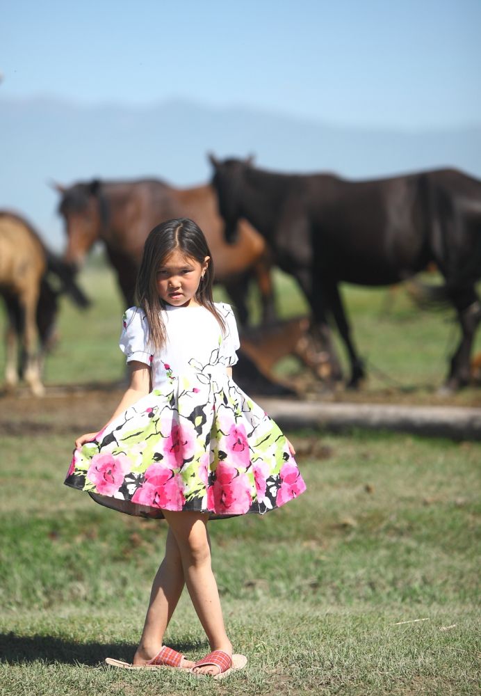 七月,我来到新疆昭苏草原,遇到了这位爱美的新疆女孩,漂亮的衣裙,纯真的眼睛,可爱极了。她的名字叫拉买恩,7岁,小学二年级学生。拉买恩的家就在这草原上的毡房里。跟她在一起的是她的父母,爷爷奶奶,还有她的小弟弟。全家就拉买恩能说一点汉语。