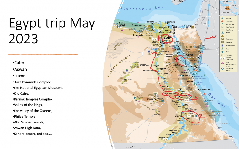 这次主要溜达了三个城市:开罗,阿斯旺和卢克索。行程是从伦敦飞到开罗,先在开罗附近玩几天,再从开罗坐飞机直接到达阿斯旺,然后坐火车北上卢克索,之后坐旅游车沿着文明发源地尼罗河一路北上,从南面的上埃及往北面的下埃及进军。一路我都是很期待亲眼看见这个文明古国,也想看看希腊,罗马,法国及英国[