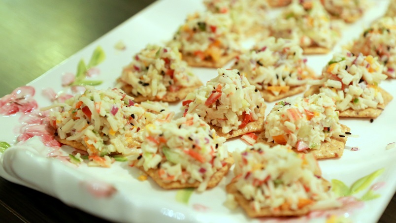 冬至那天和闺蜜们相聚,我这帮闺蜜各各都是能干又美丽,我们在一起品尝每个人带来的美食,大家化妆,做头发,拍照,臭美,每次在一起聚会都很开心。趁这个时候,祝这一年来我博客的朋友们圣诞新年快乐1女主人做的餐前小菜23我做的吞拿鱼沙拉,被微信上的朋友说像鸡腿。真的像吗?45柠檬鸭(闺蜜M大厨做的南宁菜),非常入味678我做的芋头扣肉9闺蜜S做的香辣青口10[