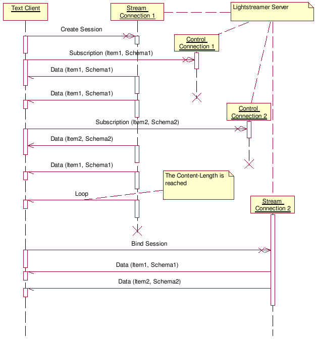 В качестве транспорта в lightstreamer используется iframe. Время от времени его необходимо закрывать для очистки от принятых объектов. При закрытии сессии (это же происходит при refresh страницы в браузере) сервер буферизует новые события до некоторого таймаута и отдает их, как только открывается новая сессия Stream Connection 2 того же пользователя.