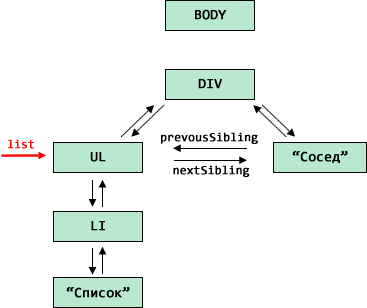 Обращаю внимание – связь разрывается только между DIV и BODY, т.е. на верхнем уровне, а list – это произвольный элемент.