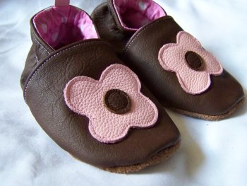 ... petits chaussons chocolat-vanille en cuir, intérieur en coton à pois dans les mêmes tons... Merci beaucoup Marion pour ta commande, j'espère qu'ils te plairont!