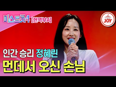 [#미스트롯4/마스터예심] 금빛 올하트를 부르는 간드러진 음색 정혜린의 무대♬ '먼데서 오신 손님' #TV조선조이 #TVCHOSUNJOY (TV CHOSUN 260106 방송)
