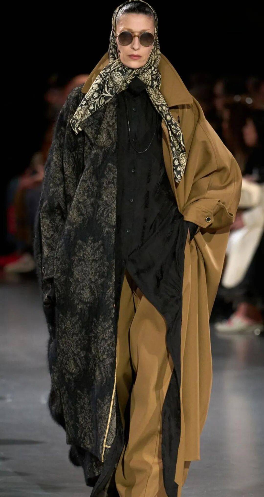 *优雅裙装在斗篷元素的设计之中,还有这些不同程度的棕色系等颜色的对比,色彩的差异让服装也多了图案的活力气质。