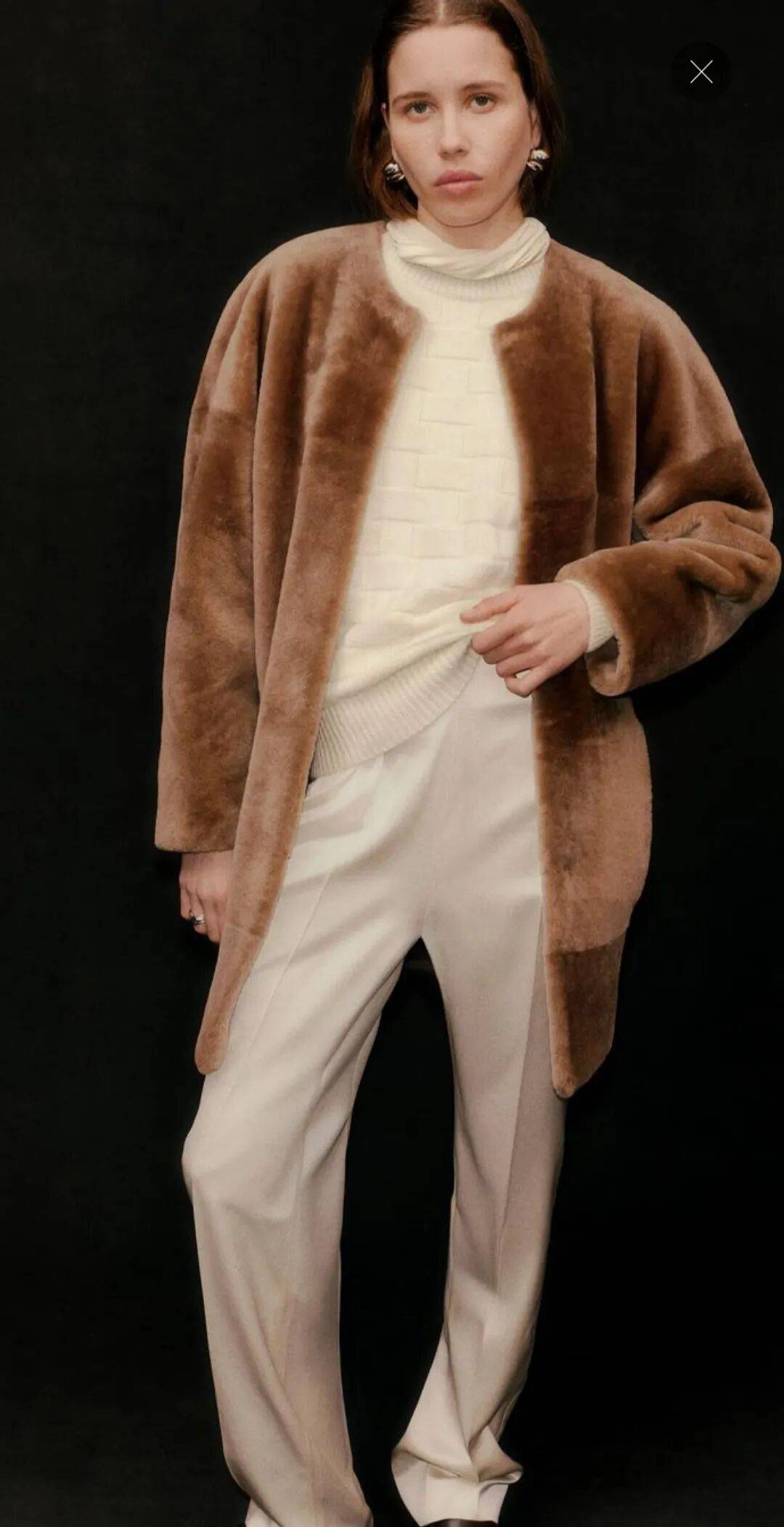 *中长款的大衣外套在驼色的颜色中,低调朴素也在宽松廓形多了直线线条感,简约外套在毛绒皮草的材质多了一些蓬松厚实的质感,而浅色内搭的搭配,在视觉对比中有鲜明清晰的层次感。