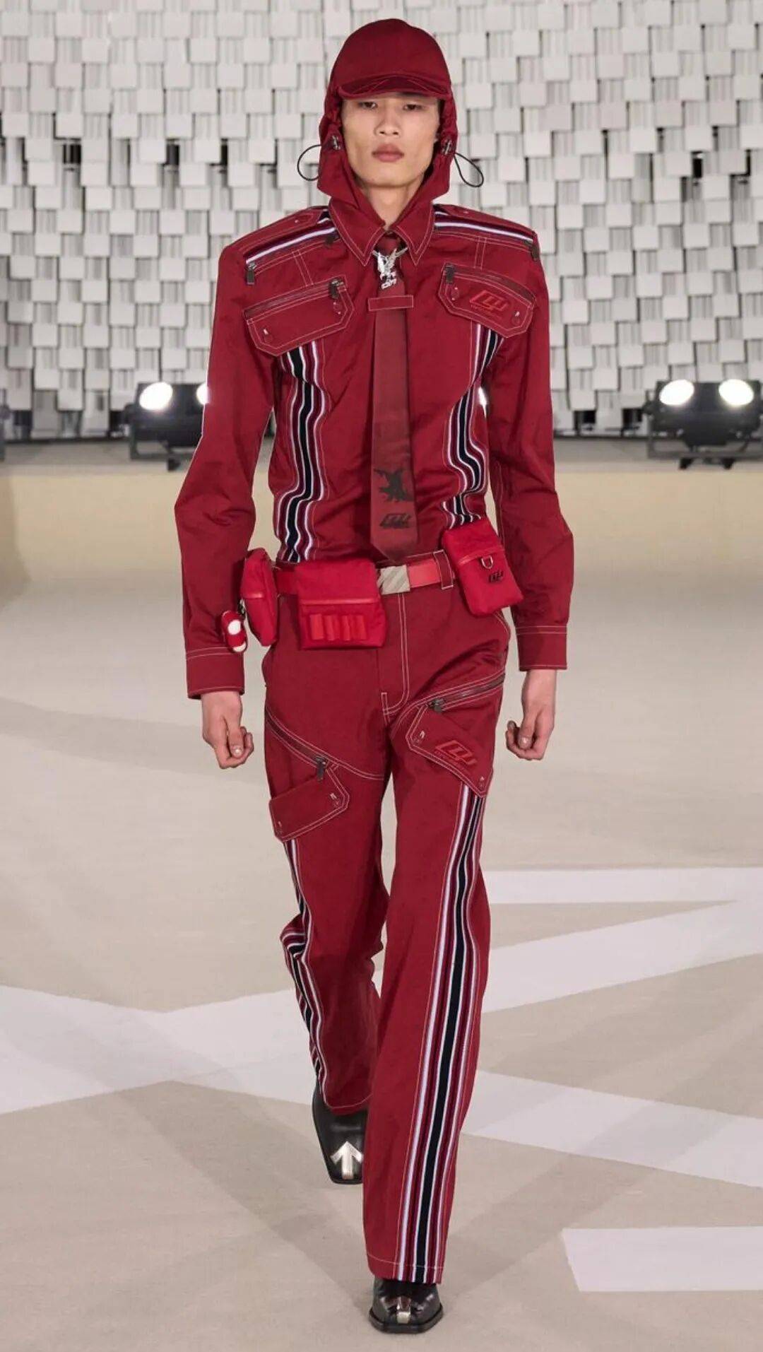 *红色和黑色的搭配,在视觉的对比中,撞色的冲击也更多了一些高级感,在口袋的工装利落中,短裤也多了休闲气息。