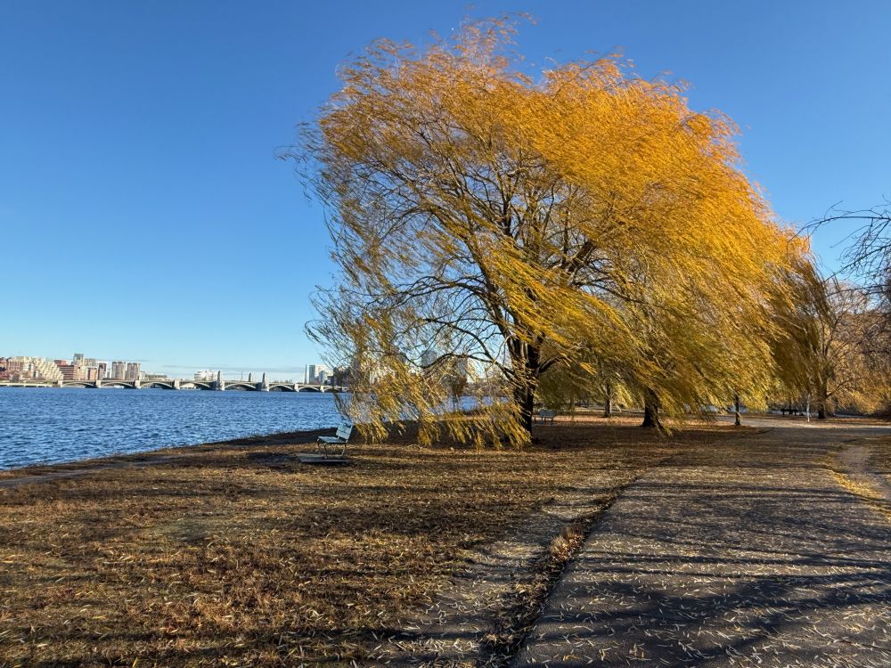 冬天的波士顿城市公园和查尔斯河边的金垂柳别有风味。