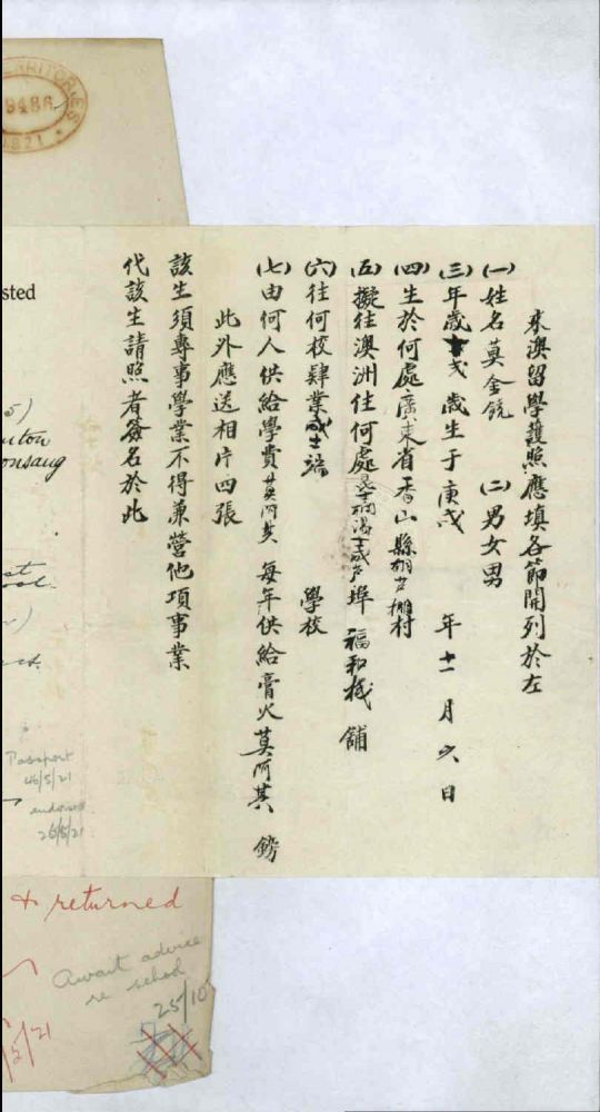 民国粤人赴澳留学档案汇编(百八一):香山莫金饶
