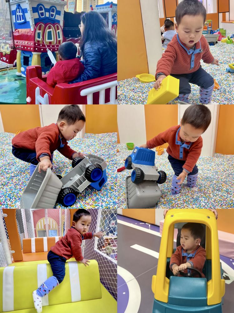 照片1:感恩节上午,外婆我和宝宝外公带着宝宝到居家邻近的户外儿童乐园乘小火车以及到户内童年时光玩耍;犹太人商业文化中有一句名言,大意是“儿童和[