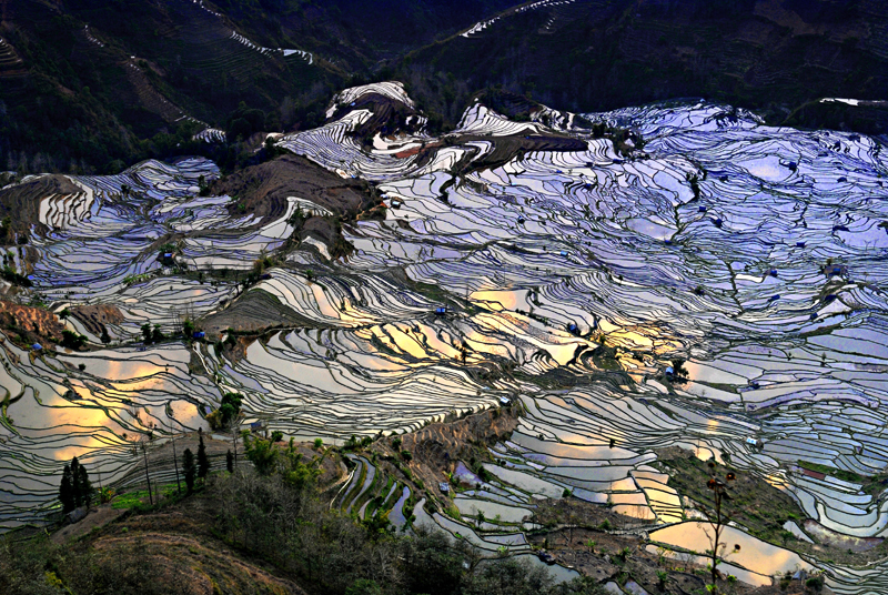 1太阳快落山了,光辉洒在梯田里
