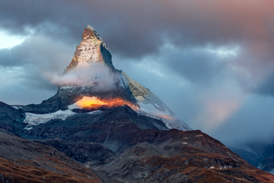 马特洪峰是瑞士辨识度最高的山,高原荒野上挺[