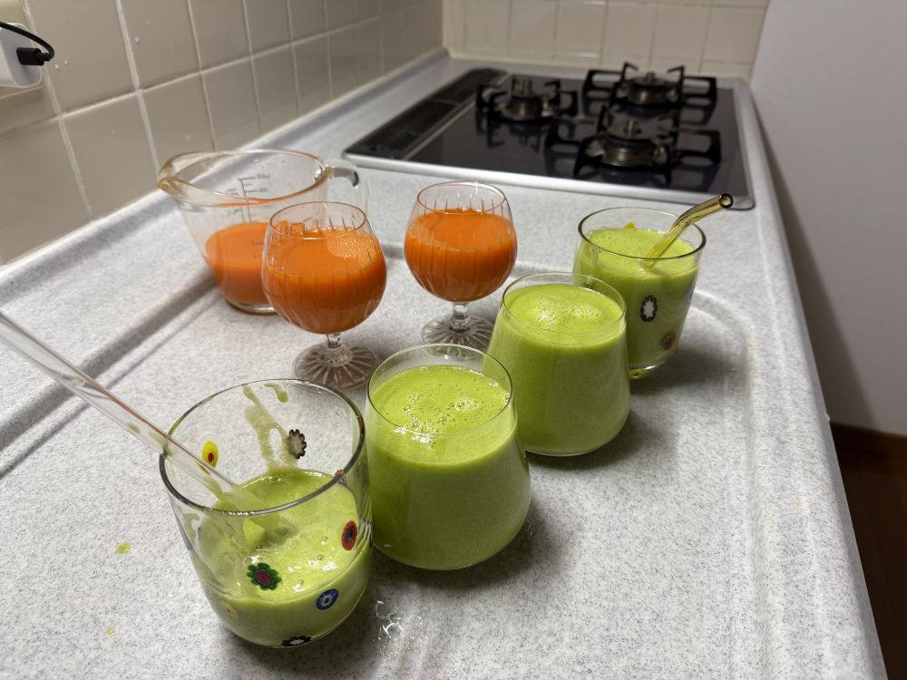 30天严格的减重结束了。心理上还是可以接受再延长几天的。今天是第31天,一个月的时间非常以这样的饮食度过,还是非常容易的。一年里春秋两季尝试一次,也是净化身体。今天早上起来想到是11/6了,哎呀时间咋就这么快。冬季天黑的早,天亮的晚。早上起来还没亮,看有时间就榨了胡萝卜汁。蔬果汁里放了羽衣甘蓝和大青椒。有机蔬菜可以调整花青素,大青椒含铁高,对[