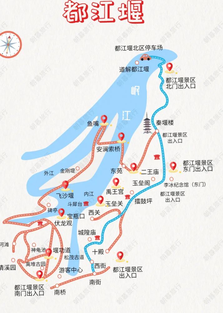 都江堰举世闻名。它修筑于公元前256年中国战国时期,是世界上现存最古老、规模最大、维护最完整的灌溉工程之一。它那至今仍在发挥效用的控水功能,稍带神化色彩的历史故事,每天都吸引了大量的游人。此外,都江堰还具有美丽的自然风光。它依山傍水,有桥有阁,大有江南风景的元素,加上附近还有一条古街-西街,更增加了其娱乐和观赏性。而蕴藏其中的古秦人治天[