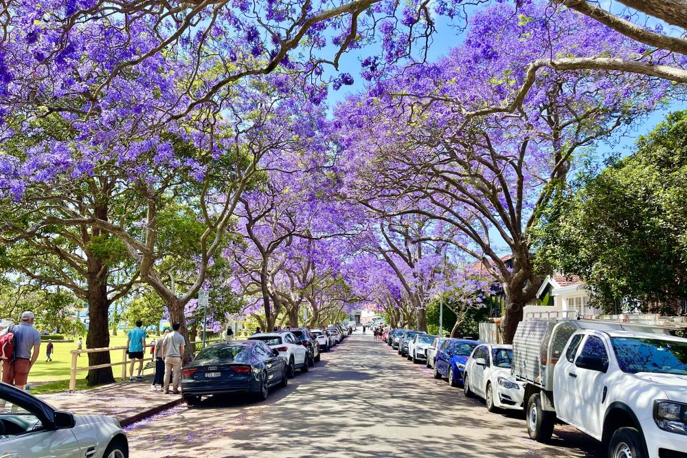 从十月下旬开始到圣诞节前夕,是澳洲一年一度蓝花楹盛开的季节。每当这个时候,铺天盖地的紫色浪漫便会席卷澳洲的东海岸,从昆士兰州一路延伸至维多利亚州,所到之处,人们都能感受到它的独特魅力,而装点这个紫色世界的天使便是蓝花楹。蓝花楹原产于南美,是一种极普通的树,它长的高高大大,树枝慵懒的向四处张开,有点像澳洲人大大咧咧的模样。初夏的十月[