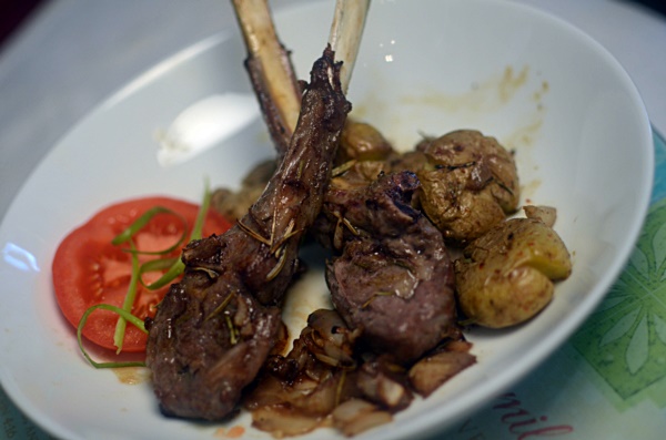 把烤箱开到Bake ,然后设置到425F。只需烤25分钟左右就好了。十分钟左右翻一次,最后5分钟放到Grill设置 ,Super Yummy 的烤羊排就出炉.