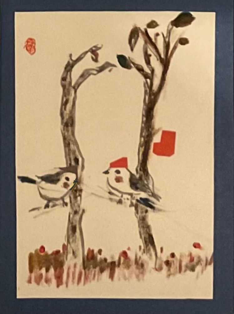 今年画了两组卡:鸟组和松鼠组。择鸟卡中一片。