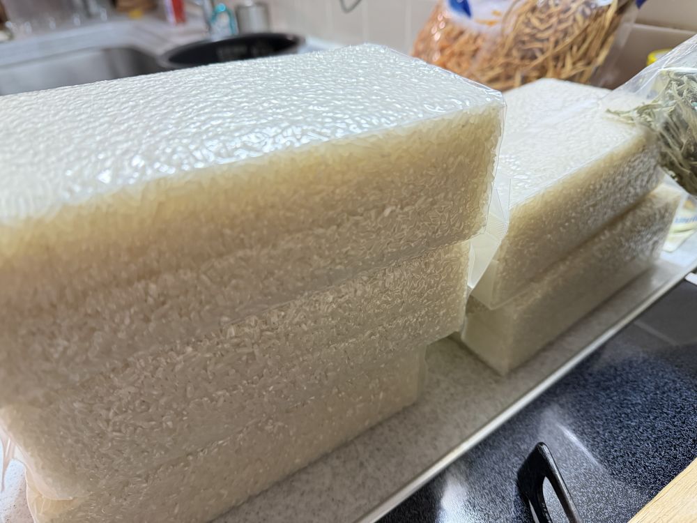 大姐第一次寄东西的时候,忘记寄大米,这怎么行!大姐赶快补发快件到深圳,我们在深圳后重新装箱,带回了足足5公斤的东北新米。周末再吃吧。