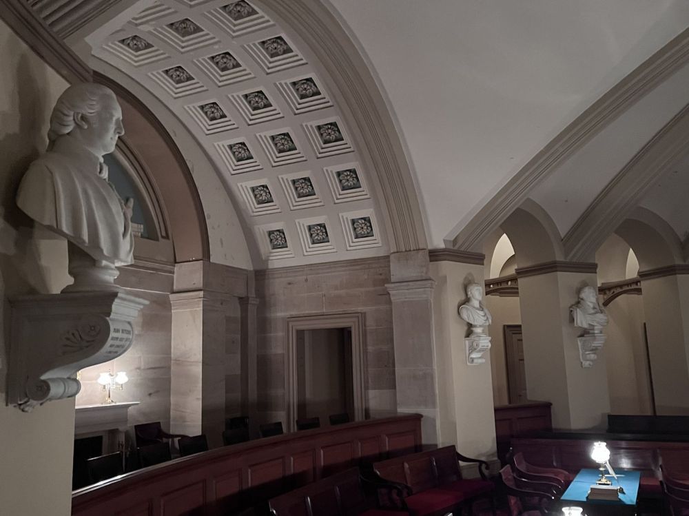 又经过层层安检,还有荷枪实弹的军人在旁边保护咱俩的安全,不许带任何身外之物包括手机。所以此处木有打卡照片,呵呵。终于,咱们坐在了位于国会大厦顶层的参议院会议厅和众议院会议厅内!两个大厅都空荡荡的,只有屈指可数的几位游客(得走很多的路,拿到许可证真心不易呀!),和我们一样坐在观众席上,身临其境感受一下…