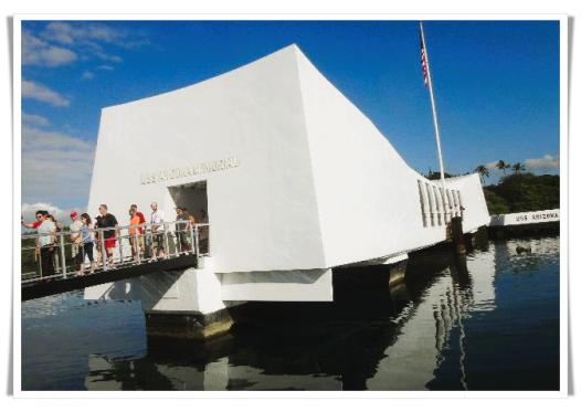 亚利桑那沉船遗址纪念馆就建在原来沉船的位置,图中白色区域便是