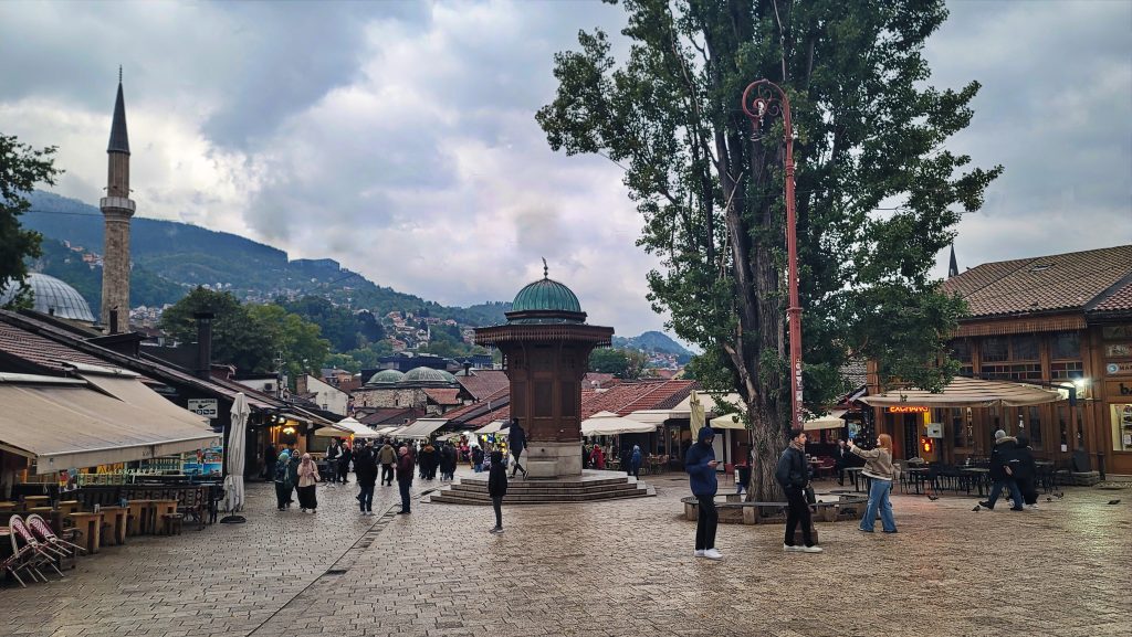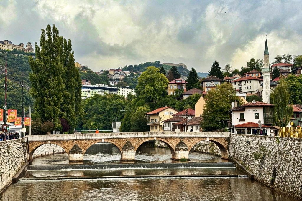 萨拉热窝位于群山环绕的盆地,是波黑的首都,也是东欧与中东文化交汇的独特城市。这里曾是奥斯曼帝国的重要边城,后又成为奥匈帝国的省府,因此街区中既有清真寺、钟楼、集市,也有天主教堂、新艺术风格建筑与宽阔大道,呈现出多民族、多宗教并存的城市风貌。