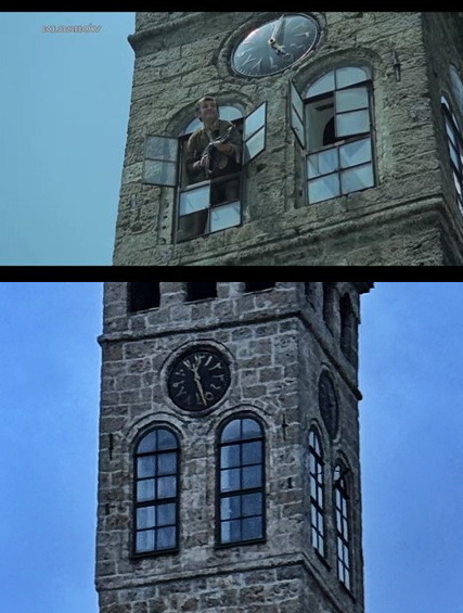 影片中清真寺的外景以其高耸的宣礼塔著称。瓦尔特在塔顶与德军交火后以绳索滑降逃脱,场面惊险紧凑。老城清真寺的奥斯曼建筑风格,使这一经典场景更具历史与视觉张力。