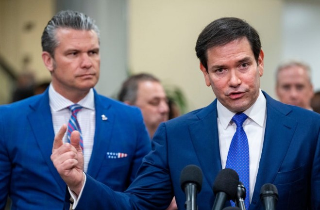 - ▲ 7日,美国国务卿马尔科·鲁比奥(右)与国防部长皮特·赫格塞思在国会正与记者会面交谈。/UPI,韩联社
