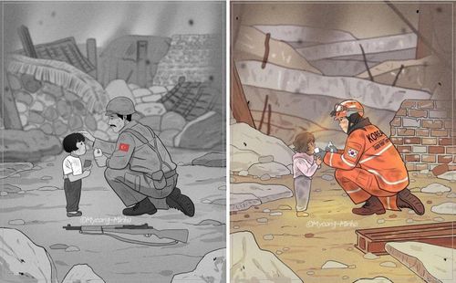 - ▲ 10日,明民浩在Instagram上传的哀悼土耳其强震的画作。/明民浩画家Instagram
