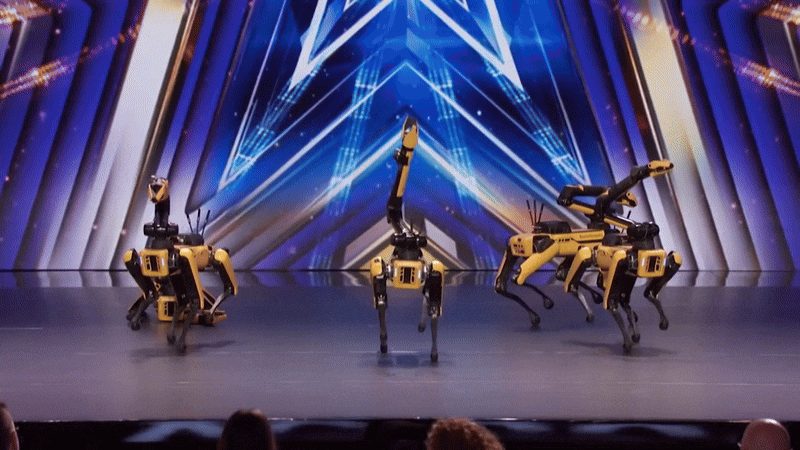 11日,《美国达人秀》官方YouTube频道发布一段视频(波士顿动力用机器人舞蹈书写新历史)。黑暗中响起Queen的歌曲《Don't Stop Me Now》,5只站成一列的Spot一致开始舞动。Spot伴随音乐在舞台上左右移动,像跳舞一样摆动四肢与身体。看到机器狗整齐划一地配合旋律挥动手臂,让人产生仿佛是真人在演唱的错觉。在开场时,1只机器狗停下瘫坐,剩余4只完成了时长约1分30秒的舞台表演。