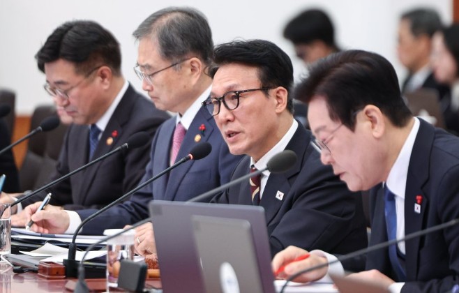 - ▲ 30日,国务总理金民锡正在青瓦台召开的国务会议上发言。/韩联社