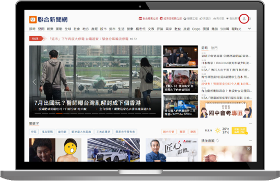 進入聯合新聞網後,點選右上人像圖。