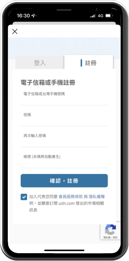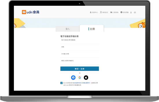 使用 udn 會員註冊,註冊完畢後驗證資料即可成為會員。