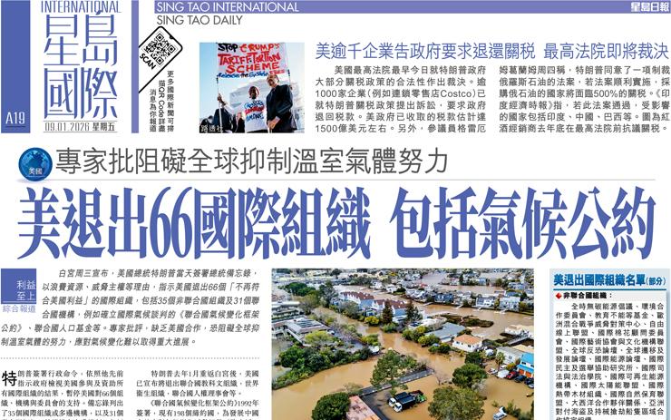 美退出66國際組織 包括氣候公約 專家批阻礙全球抑制溫室氣體努力