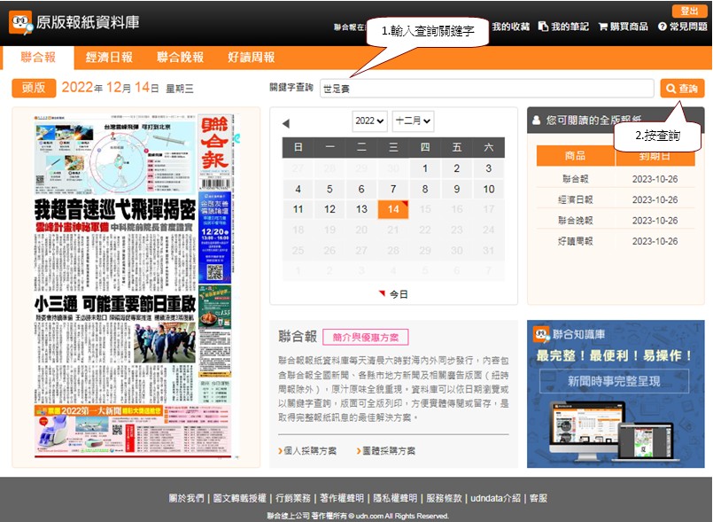 ● 可依關鍵字查詢購買報別相關新聞所在報紙原版影像。