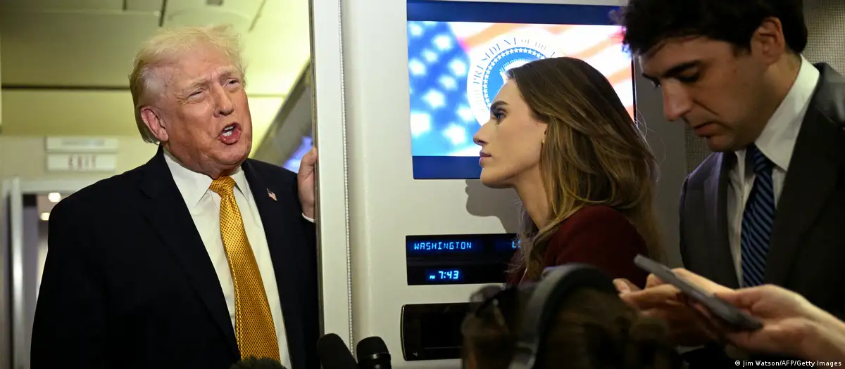 (德国之声中文网)完成对委内瑞拉的突袭、抓捕了马杜罗夫妇之后,美国总统特朗普一行周日(1月4日)从弗罗里达返回华盛顿。媒体公开的画面上,人们看到志在必得的特朗普,以及一些难掩兴奋的国会议员。德国电视一台评论道,“胜仗让人的胃口变得更大”。