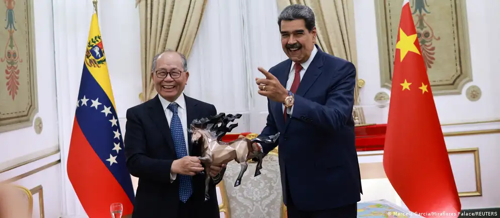 长期以来,中国一直将委内瑞拉视为其在拉美地区的重要政治盟友,并寻求扩大在该地区的影响力。2025年5月,中国领导人习近平在俄罗斯纪念二战胜利80周年活动期间与马杜罗举行会晤。习近平将中委关系描述为“铁杆友谊”,是“相互信赖、共同发展的好伙伴”、“全天候战略伙伴”,同时重申中国支持委内瑞拉“维护国家主权”。