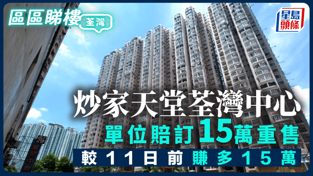 炒家天堂荃灣中心 賠訂15萬重售 較11日前賺多15萬|區區睇樓