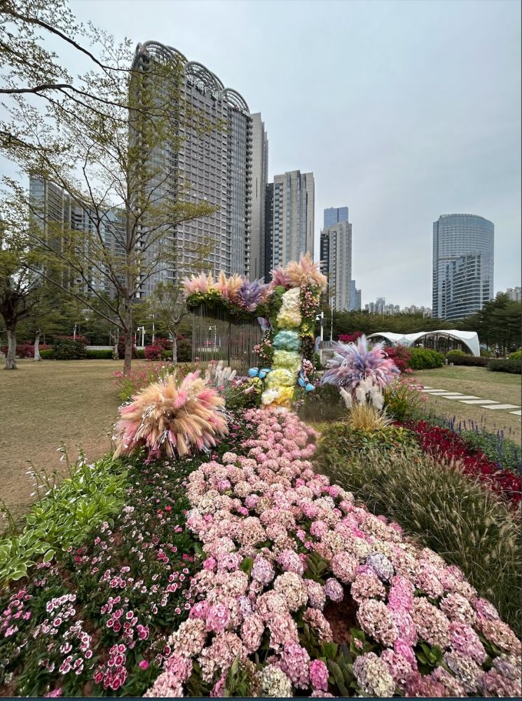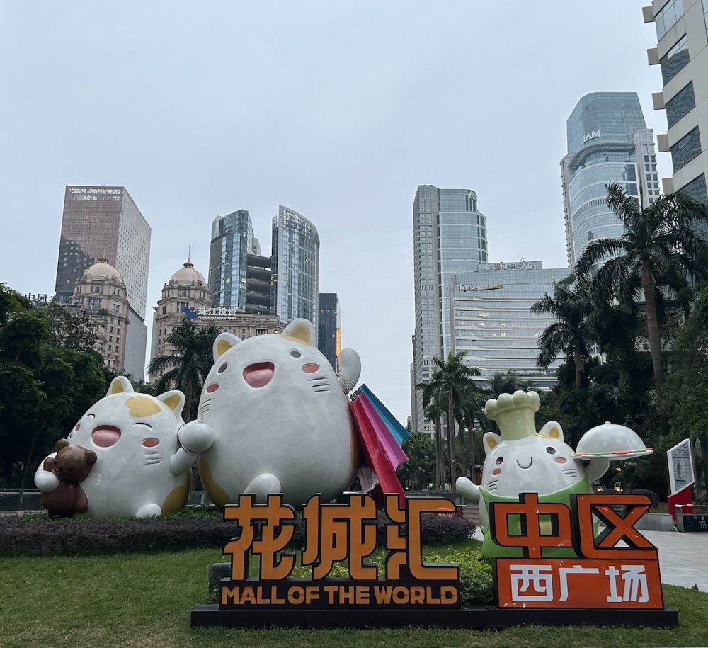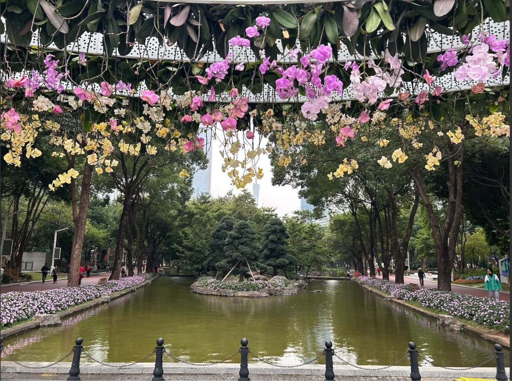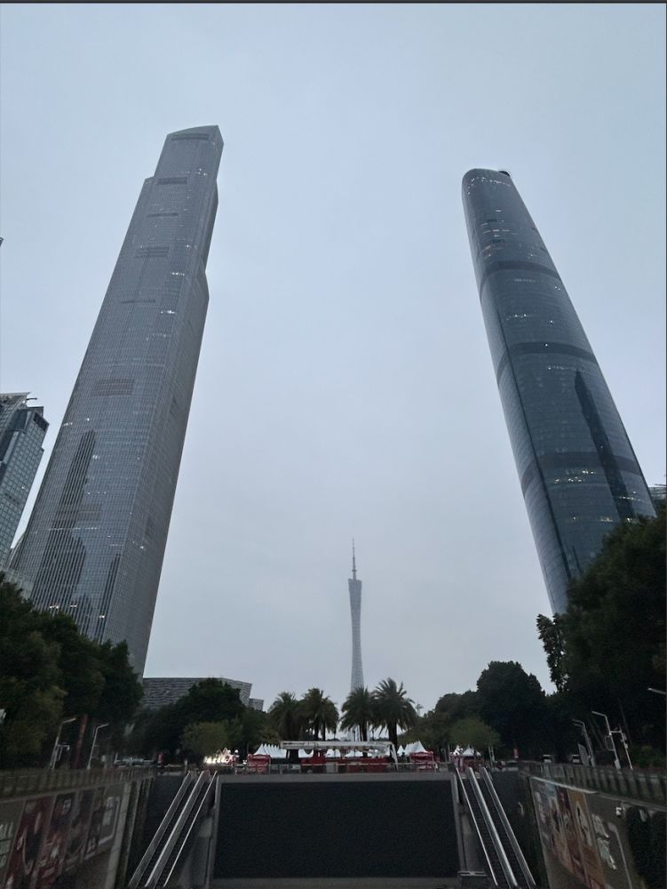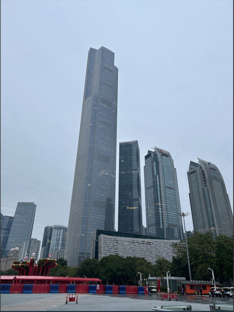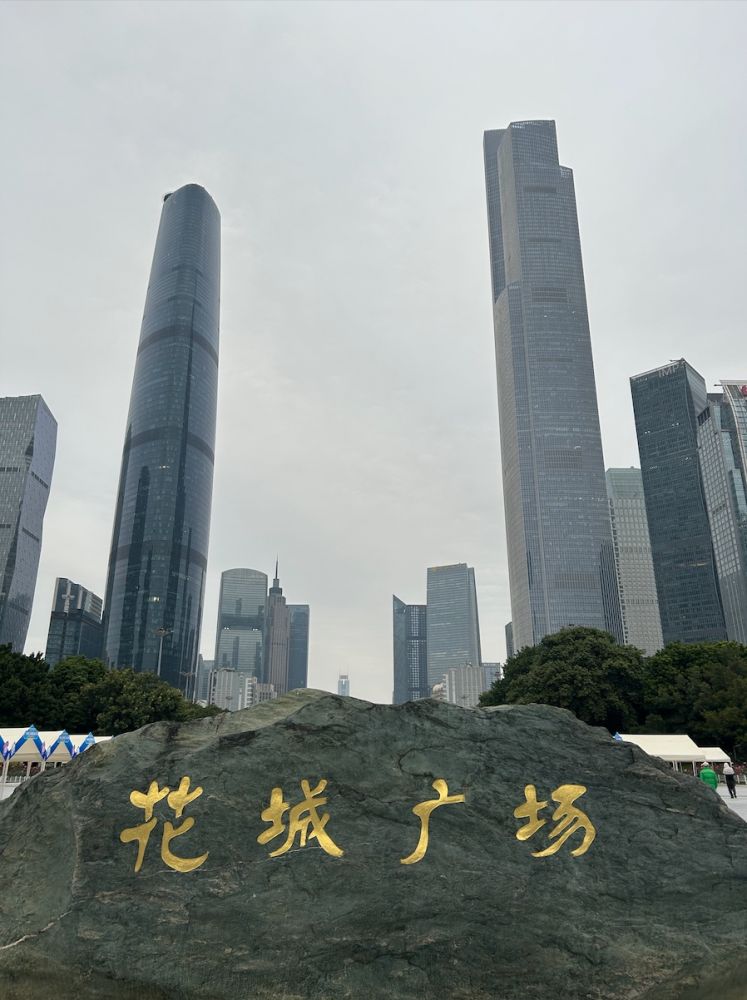 据说建于2010年的花城广场是广州的龙脉,被誉为广州“城市客厅”,是广州市最大的城市广场。广场内设有两公里长的步行栈道,1.5万平方米的浮岛湖及600余棵大树,地下空间连通周边39栋商业办公楼和公共文化建筑(以后有机会去体验一下这四通八达的地下城一定很壮观),形成观光,休闲,娱乐,购物配套齐全的"城市客厅",散落各处的便民空间涵盖网红茶饮咖啡,特色餐厅等。周边汇集广州图书馆新馆,广州大剧院,广东省博物馆新馆,广州市第二少年宫等39座文化地标,以及广场北侧高530米的广州周大福金融中心(也称广州东塔)与440米的广州国际金融中心共同构成珠江新城超高层建筑群 。
