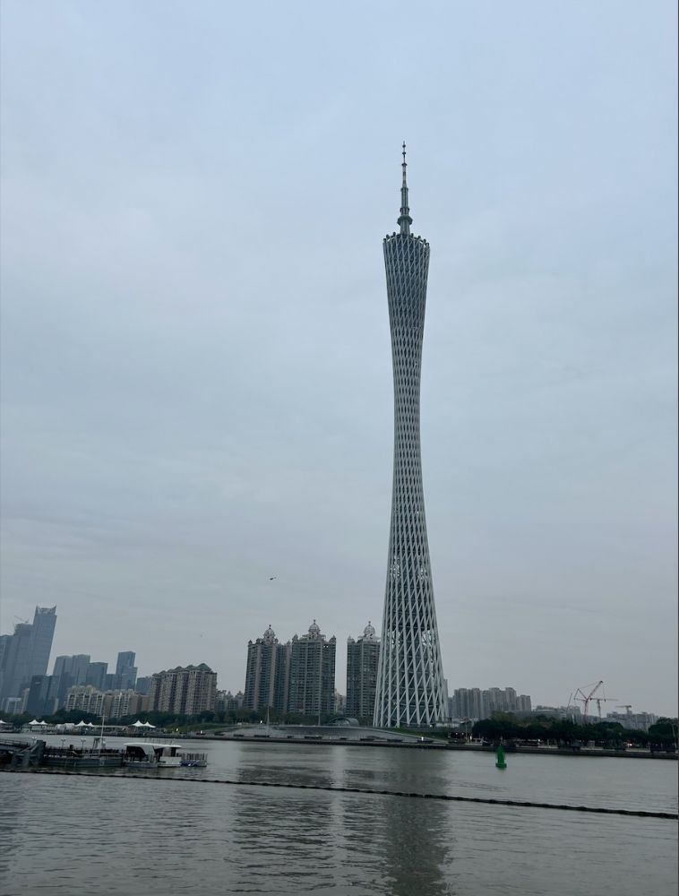 跑过海心桥,著名地标广州塔近在咫尺。广州塔又称广州新电视塔。广州塔于2009年9月竣工,2010年9月30日正式对外开放。塔身主体高454米,天线桅杆高146米,总高度600米,168~334米处设有“蜘蛛侠栈道”,423米处设有旋转餐厅, 450~454米处设有摩天轮,455~485米处设有“极速云霄”速降游乐项目。广州塔也是节假日灯光秀,烟火秀的中心场地。