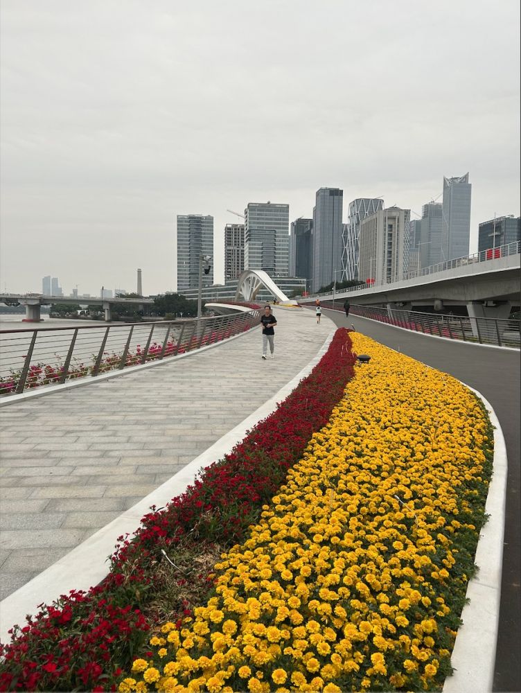 12月26日早上,在花城广场,海心沙亚运公园,广州塔(当地人称“小蛮腰”),珠江河两岸跑一圈,印象深刻。这一带步道平坦宽广,环境优美,绿树成荫,作为花城,这里不少的鲜花,五彩缤纷,分外妖娆。迷人的现代化城市风光以及美丽的珠江河两岸风景,对我而言,这花城果然名不虚传,就是一个跑步胜地。途中,见到不少跑步的,深感这里跑步运动的普及。