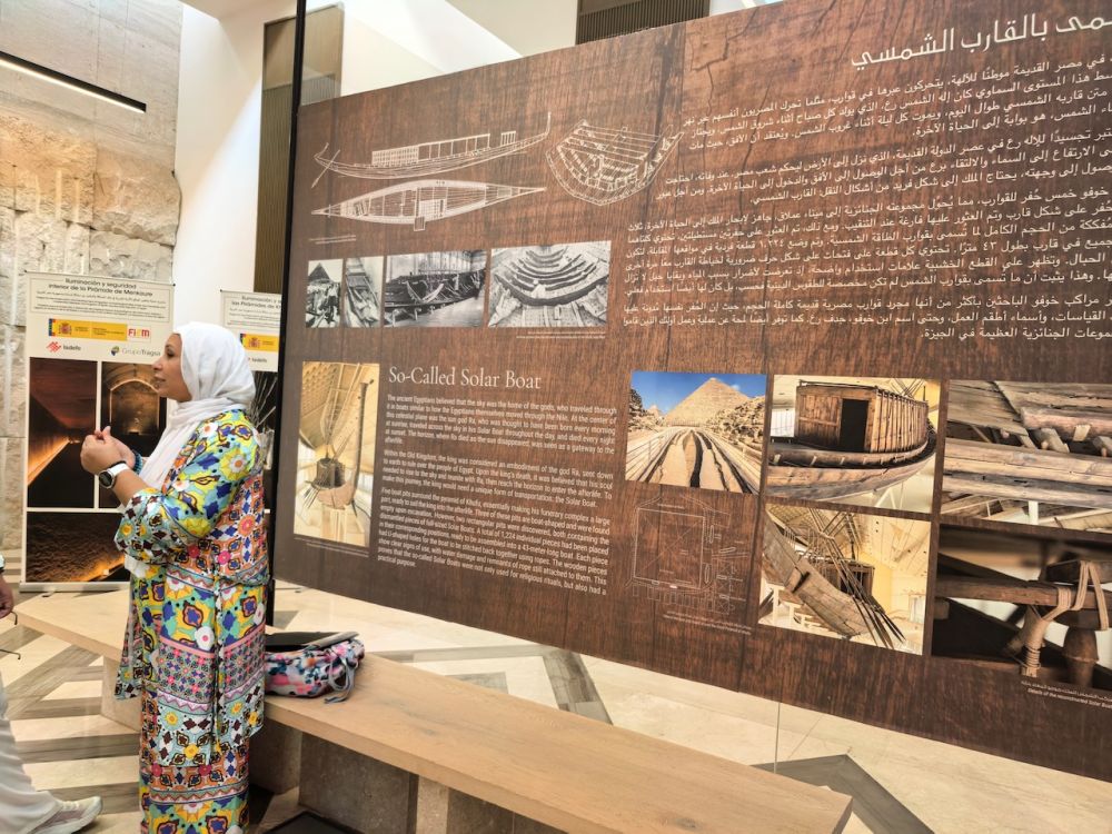 大厅里,有一系列文字解说介绍金字塔