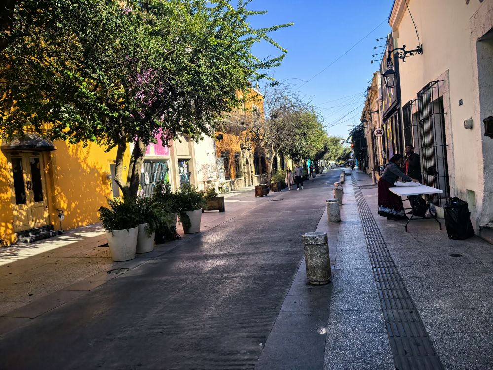 蒙特雷酒店Hotel Fiesta Versalles位于市中心区域,我开了半个多小时才到,到酒店时已经晚上8点多了。这个酒店的房间并不像三星级的,但浴巾很白,还有大桶的纯净水。反正我们只想苟住一晚,也不挑剔了。入睡前,我跟女儿去酒店旁的便利店买瓶装水和零食,坑坑洼洼的人行道上居然躺着流浪汉。但这里的物价并不低,墨西哥产的袋装薯片竟然要3美元。第二天早上,当我们要欣赏一下蒙特雷市中心的市容时,刚出门不久就看见长长的电线悬浮在我们头顶,而且这种电线延续到好几条街巷。街巷里脏兮兮的,到处都是垃圾,一点儿现代化城市的样子也没有,我们走了一小段路就走不下去了,转身回酒店吃免费的简易早餐,对蒙特雷失望至极,觉得它的城市风貌根本配不上它的物价。