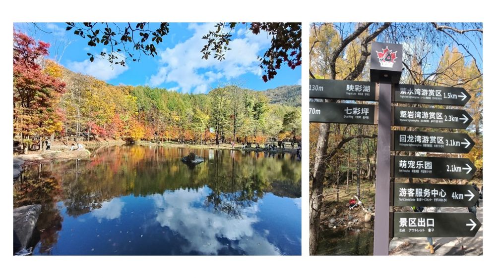本溪是中國著名的賞楓勝地,老邊溝景區以原始森林、溪流、瀑布聞名,楓葉色彩層次豐富,秋日賞楓的車流人潮甚多。這段行程是自由活動,團員自行沿著溪流兩岸步道遊覽,秋色固然醉人,但是人聲吵雜有點煞風景。