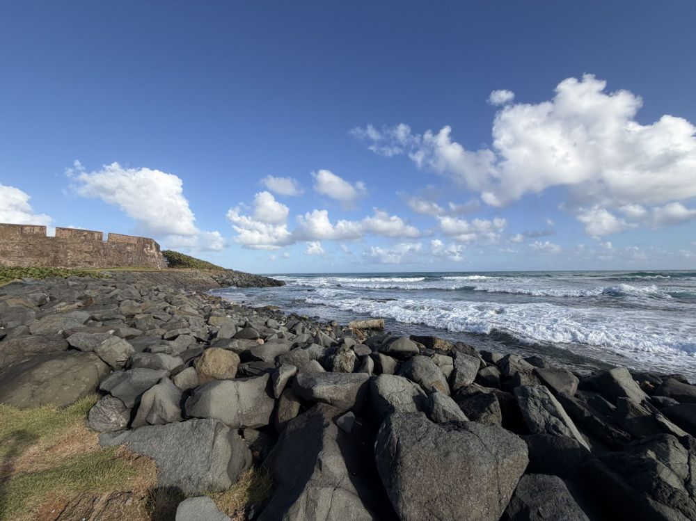 波多黎各十二月中旬夜晚气温下降很快,再加上当地湿度很大,体感还是挺凉的。不过太阳一出来,气温马上带领大家进入盛夏!在San Juan的最后一个上午,咱们当然不能闲着,附近有很多沙滩,堤坝,防护墙,可以散步、跑步、随意休闲。