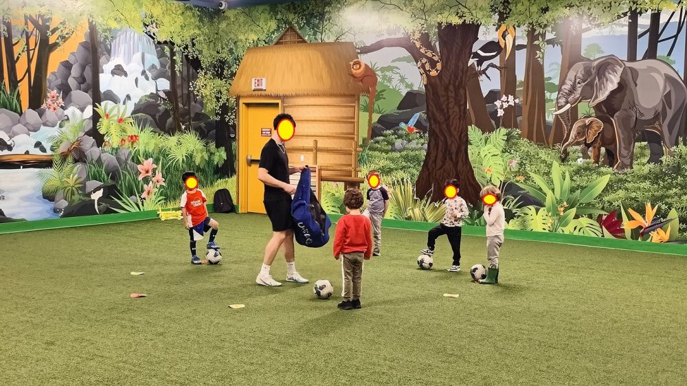 足球每周训练一次,都是周三下午。下周三还是我们带他去